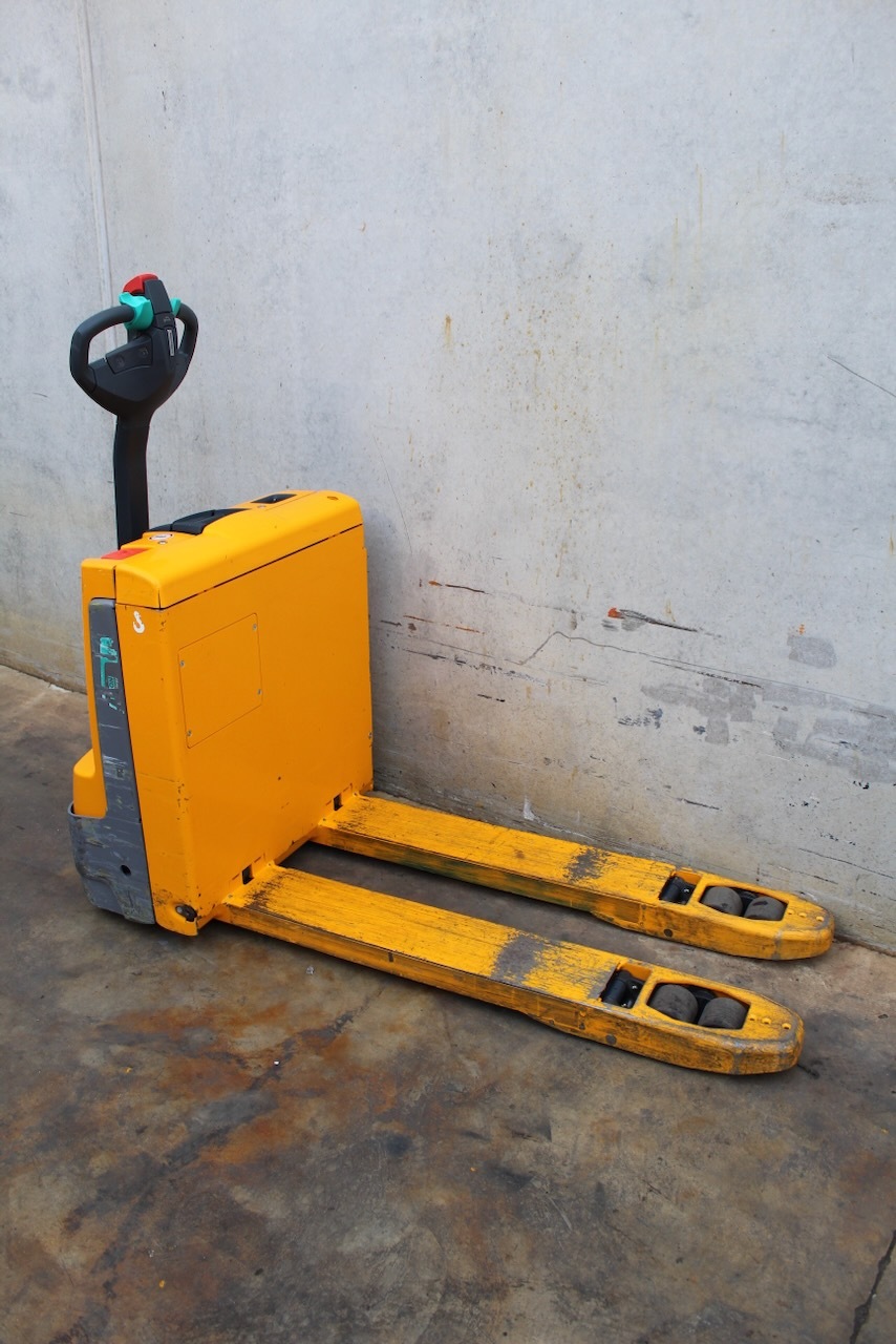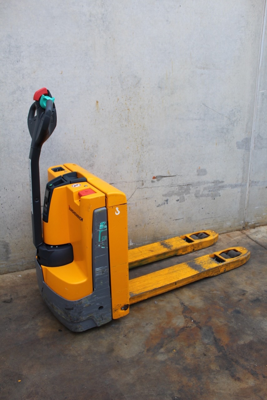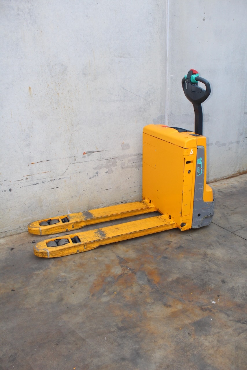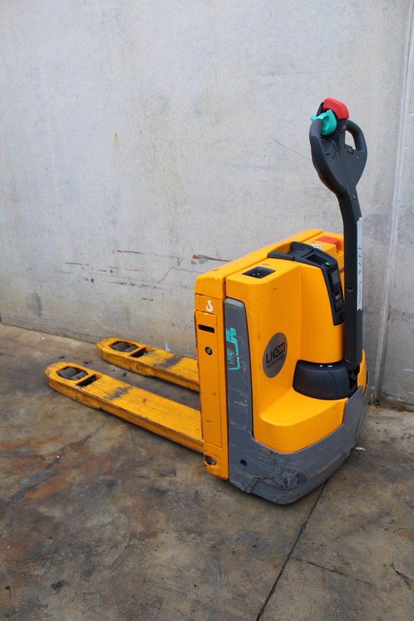 Jungheinrich EJE 112i LI-ION Load capacity: 1.200 Kg Lifting height: Mast: Fork: 1.150 x 540 mm Build height: Motorization: Electric Battery: 24v/40Ah Charger: 24 v incorporated Good condition, ONLY 409 working hours! Lithium battery year 2023.