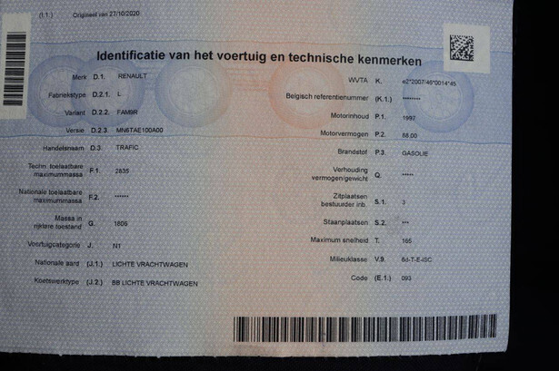 Brand: Renault Model: Trafic Chassis number: VF1FL000466055699 Date of first registration: 2020 Fuel: Diesel Engine power: 119 HP Transmission: Manual Cylinder capacity: 1997 cc Mileage reading: 164398 KM Color: gray