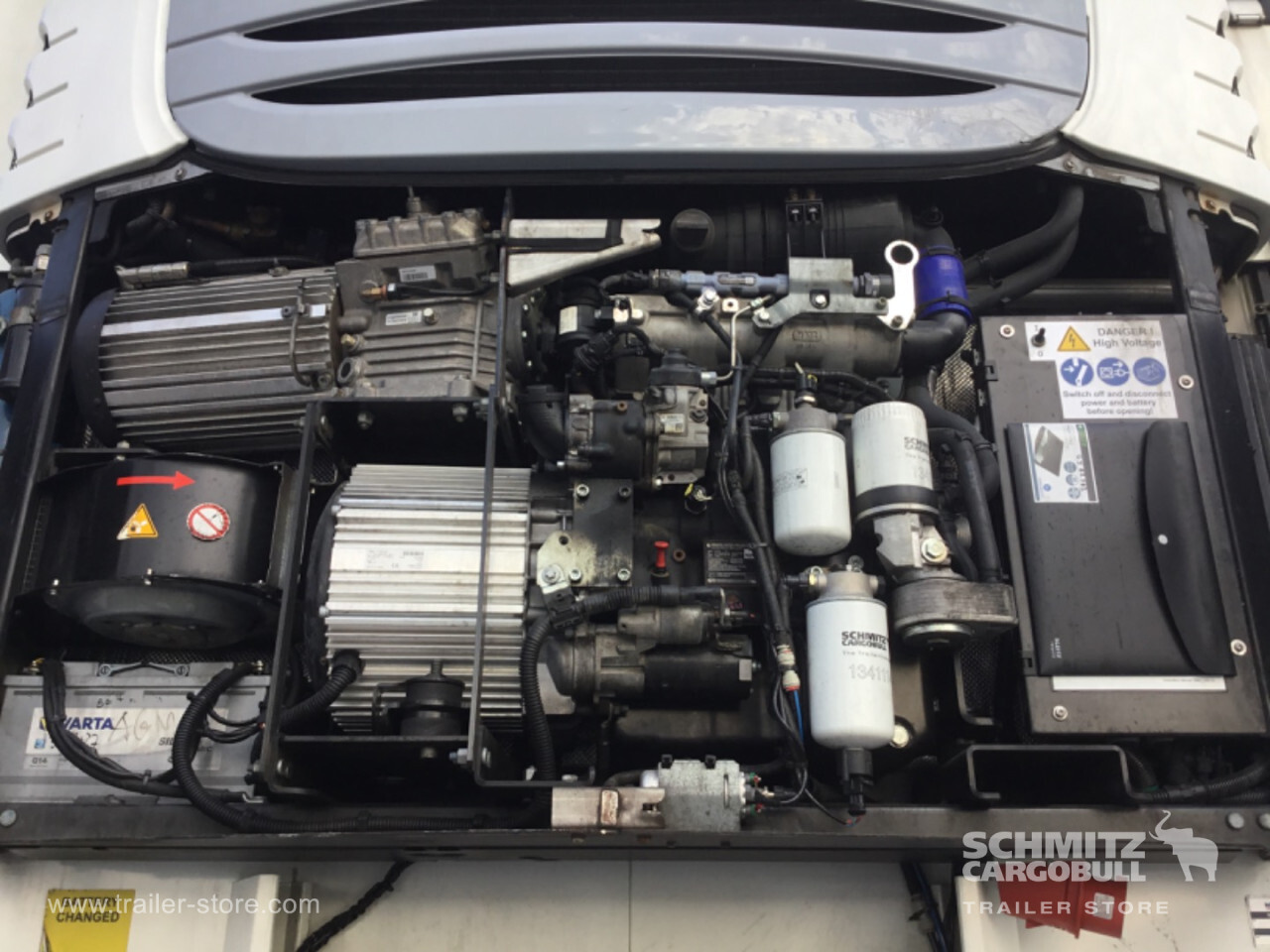 Remarks: **Safety**\\Fixed rear underrun, Antilock Braking System ABS\\\\**Interior**\\EURO meat hanging system 60 mm\\\\**Exterior**\\Air suspension, Pallet box (double), Spare wheel carrier, Ferry lashings, 1x15 and 2x7 pin plug, Antispray, Customs sealing capability\\\\**Brake system**\\Disc brake, Schmitz ROTOS\\\\**Floor**\\Aluminum floor\\\\**Roof**\\Aluminum roof\\\\**Cooling unit**\\Schmitz Cargobull, Diesel/Elektro, 18.414 Operating hours Diesel, 894 Operating hours electric\\\\**Loading area**\\Length 13.315 mm, Width 2.490 mm, Height 2.650 mm, Volume 88 m³\\\\**Tyre sizes**\\1. Achse: 385/55 R22.5 , Tread depth: 5 mm / 7 mm, 2. Achse: 385/55 R22.5 , Tread depth: 7 mm / 6 mm, 3. Achse: 385/55 R22.5 , Tread depth: 6 mm / 5 mm\\\\----