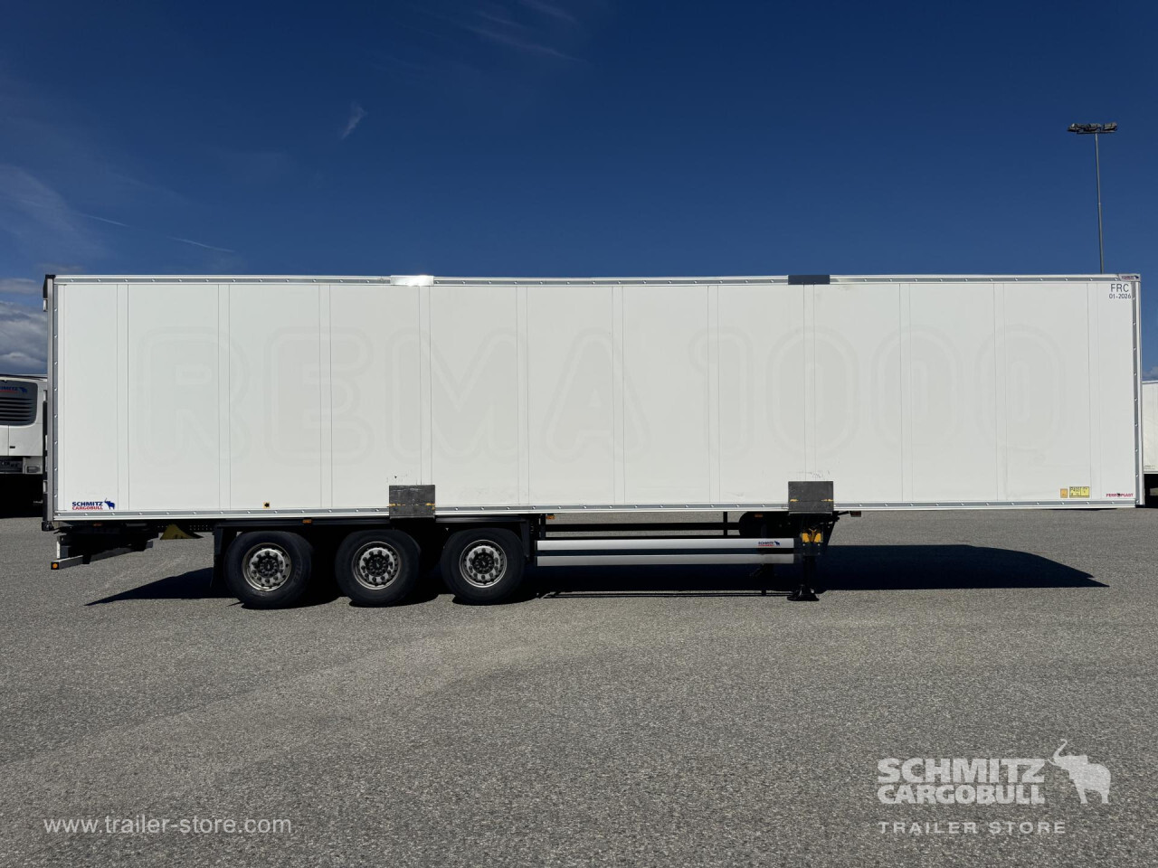 Remarks: **Safety**\\Rear underrun, Antilock Braking System ABS, Telematics system\\\\**Interior**\\Temperature recorder, Double deck\\\\**Exterior**\\Air suspension, Lift axle, 1x15 and 2x7 pin plug, Antispray\\\\**Brake system**\\Disc brake, Schmitz ROTOS\\\\**Cooling unit**\\Schmitz Cargobull S.CU mt V 2.0, Diesel/Elektro, 14.831 Operating hours Diesel, 68 Operating hours electric\\\\**Loading area**\\Length 13.403 mm, Width 2.490 mm, Height 2.700 mm, Volume 90 m³\\\\**Tyre sizes**\\1. Achse: 385/65 R22.5 , Tread depth: 11 mm / 12 mm, 2. Achse: 385/65 R22.5 , Tread depth: 9 mm / 9 mm, 3. Achse: 385/65 R22.5 , Tread depth: 14 mm / 11 mm\\\\**Other dimensions and weights**\\Payload: 33.007 kg, GVW: 42.000 kg, Wheel base: 8.100 mm\\\\----Schmitz cooling unit diesel hrs: 14831 el hrs: 68, 410 external 270 internal height, 18t king pin, 810 wheelbaseMOT/PKK 27.3.26