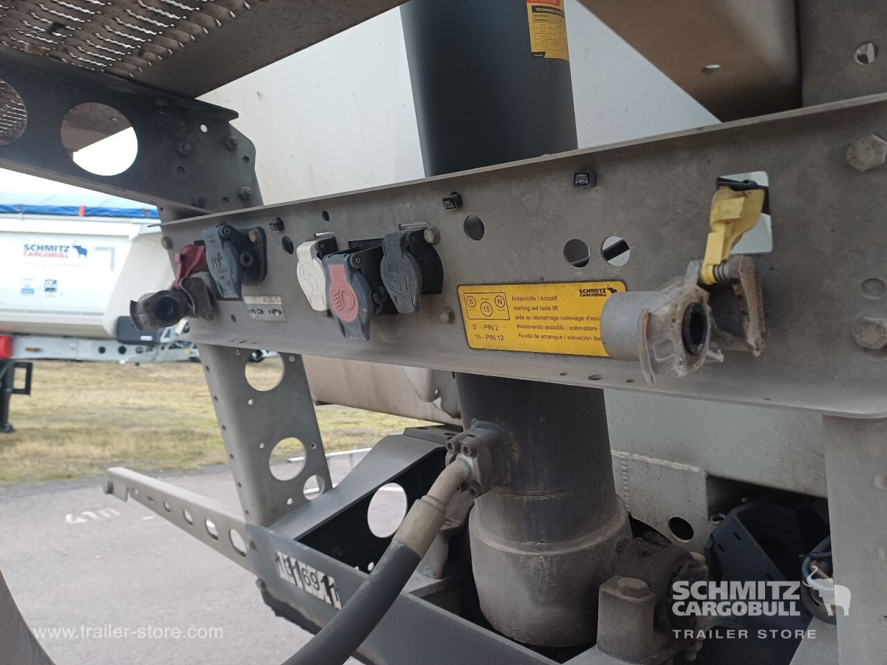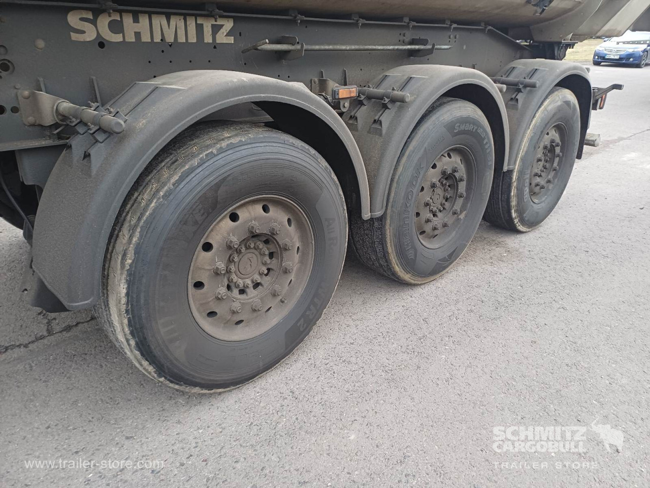 Remarks: **Safety**\\Hinged rear underrun, Antilock Braking System ABS\\\\**Exterior**\\Air suspension, Lift axle front, Exterior pendulum tailgate, Roof rolling tarpaulin, Access platform, 1x15 and 2x7 pin plug, Antispray, Light alloy rims\\\\**Brake system**\\Disc brake, Schmitz ROTOS\\\\**Loading area**\\Length 7.480 mm, Width 2.354 mm, Height 1.460 mm, Volume 24 m³\\\\**Tyre sizes**\\1. Achse: 385/65 R22.5 , Tread depth: 9 mm / 11 mm, 2. Achse: 385/65 R22.5 , Tread depth: 10 mm / 9 mm, 3. Achse: 385/65 R22.5 , Tread depth: 5 mm / 11 mm\\\\**Other dimensions and weights**\\GVW: 36.000 kg\\\\----