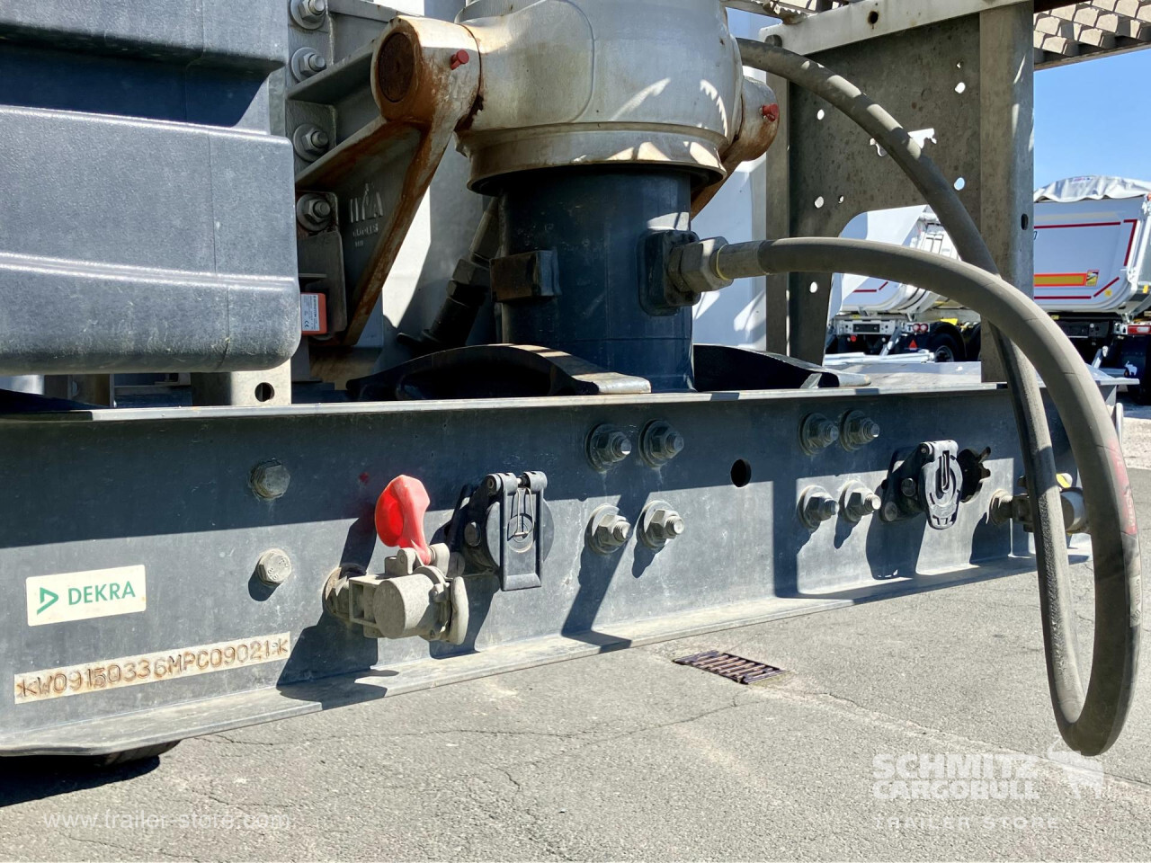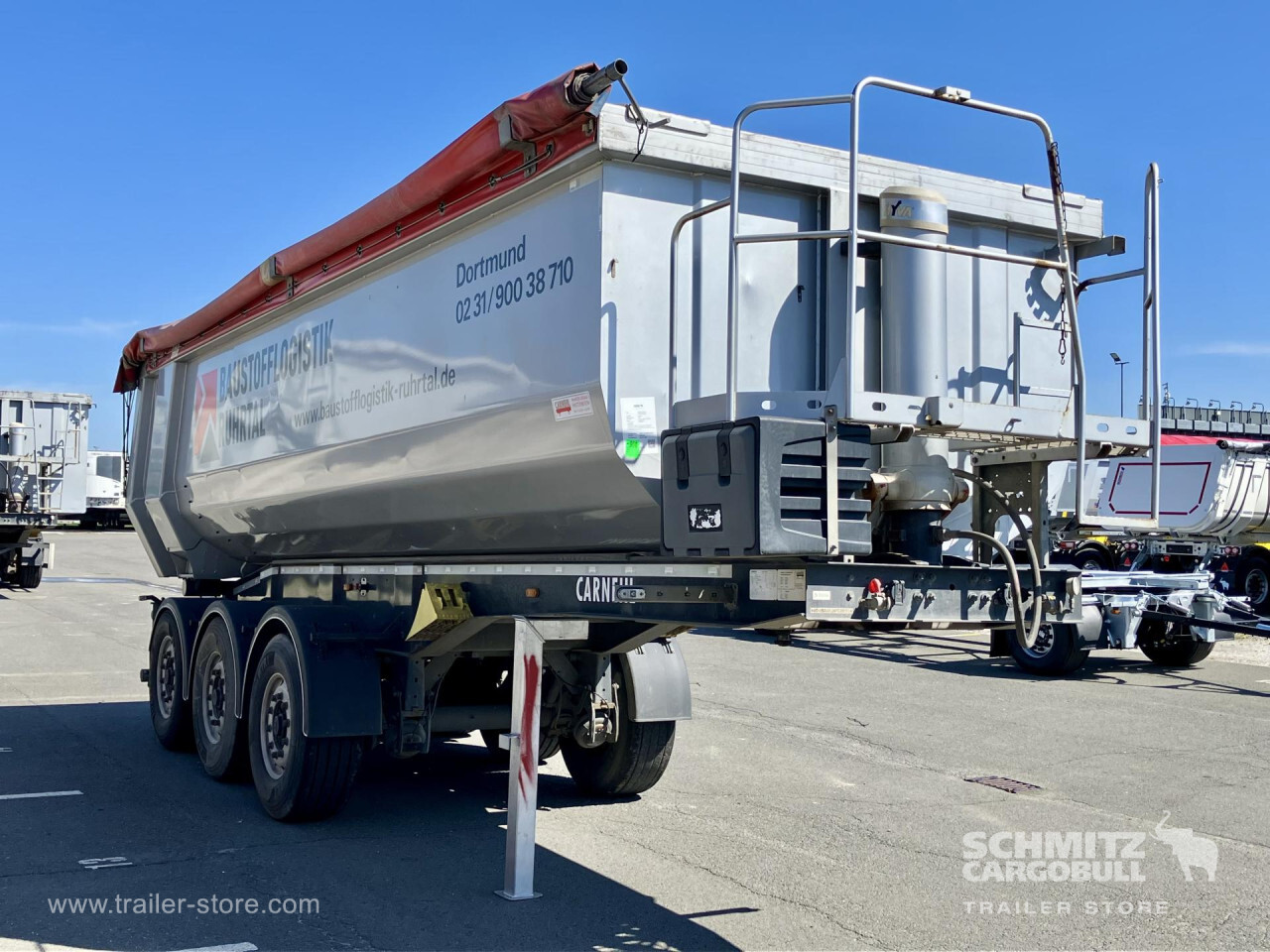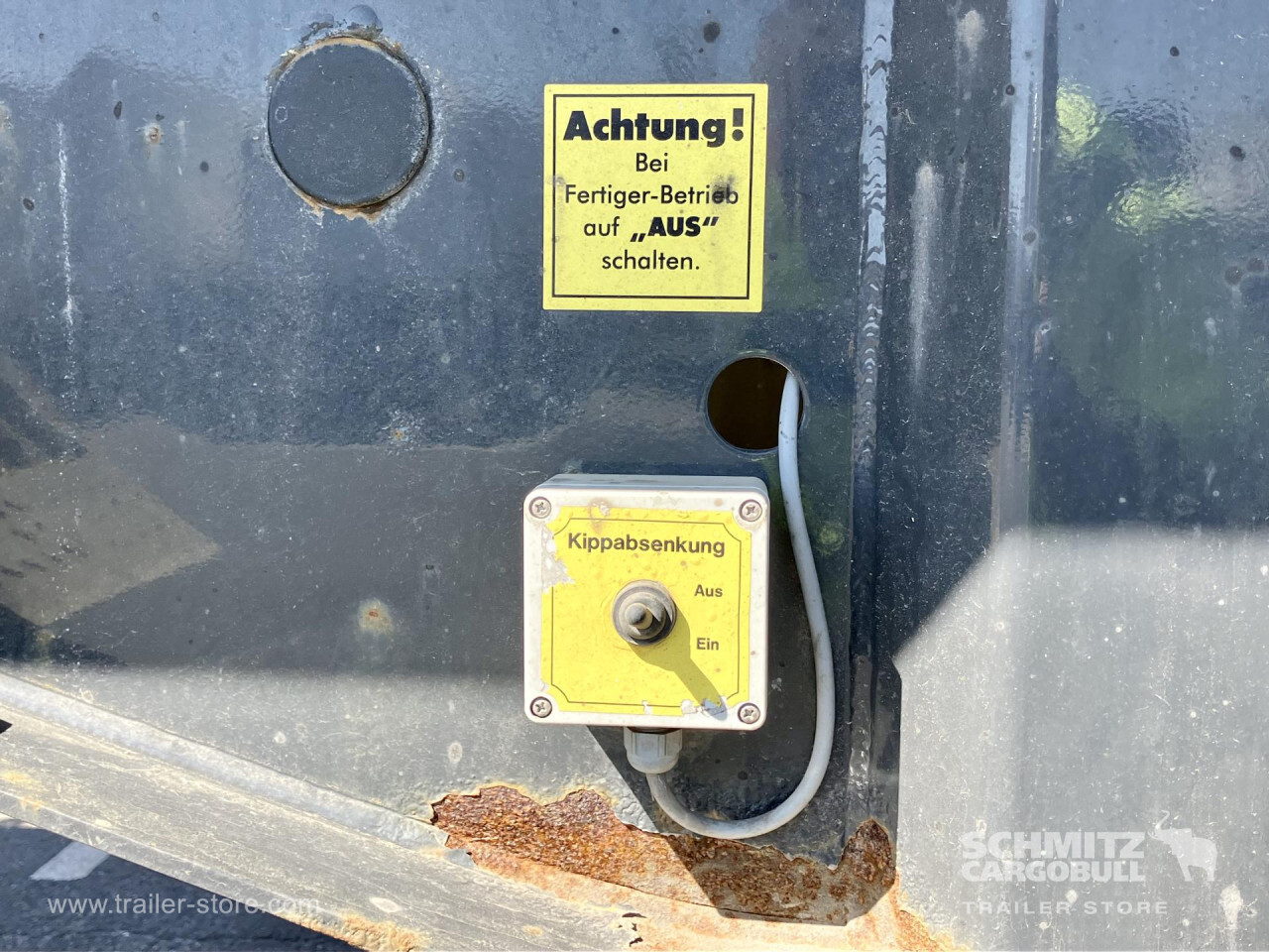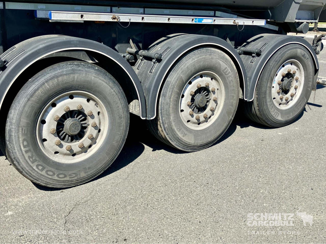 Remarks: **Safety**\\Hinged rear underrun, Antilock Braking System ABS\\\\**Exterior**\\Air suspension, Toolbox, Recessed pendulum tailgate, Roof rolling tarpaulin, Access platform, 1x15 pin plug, Light alloy rims\\\\**Brake system**\\Disc brake\\\\**Loading area**\\Length 7.100 mm, Width 2.340 mm, Height 1.500 mm, Volume 24 m³\\\\**Tyre sizes**\\1. Achse: 385/65 R22.5 , Tread depth: 10 mm / 3 mm, 2. Achse: 385/65 R22.5 , Tread depth: 13 mm / 14 mm, 3. Achse: 385/65 R22.5 , Tread depth: 5 mm / 12 mm\\\\**Other dimensions and weights**\\GVW: 35.500 kg\\\\----