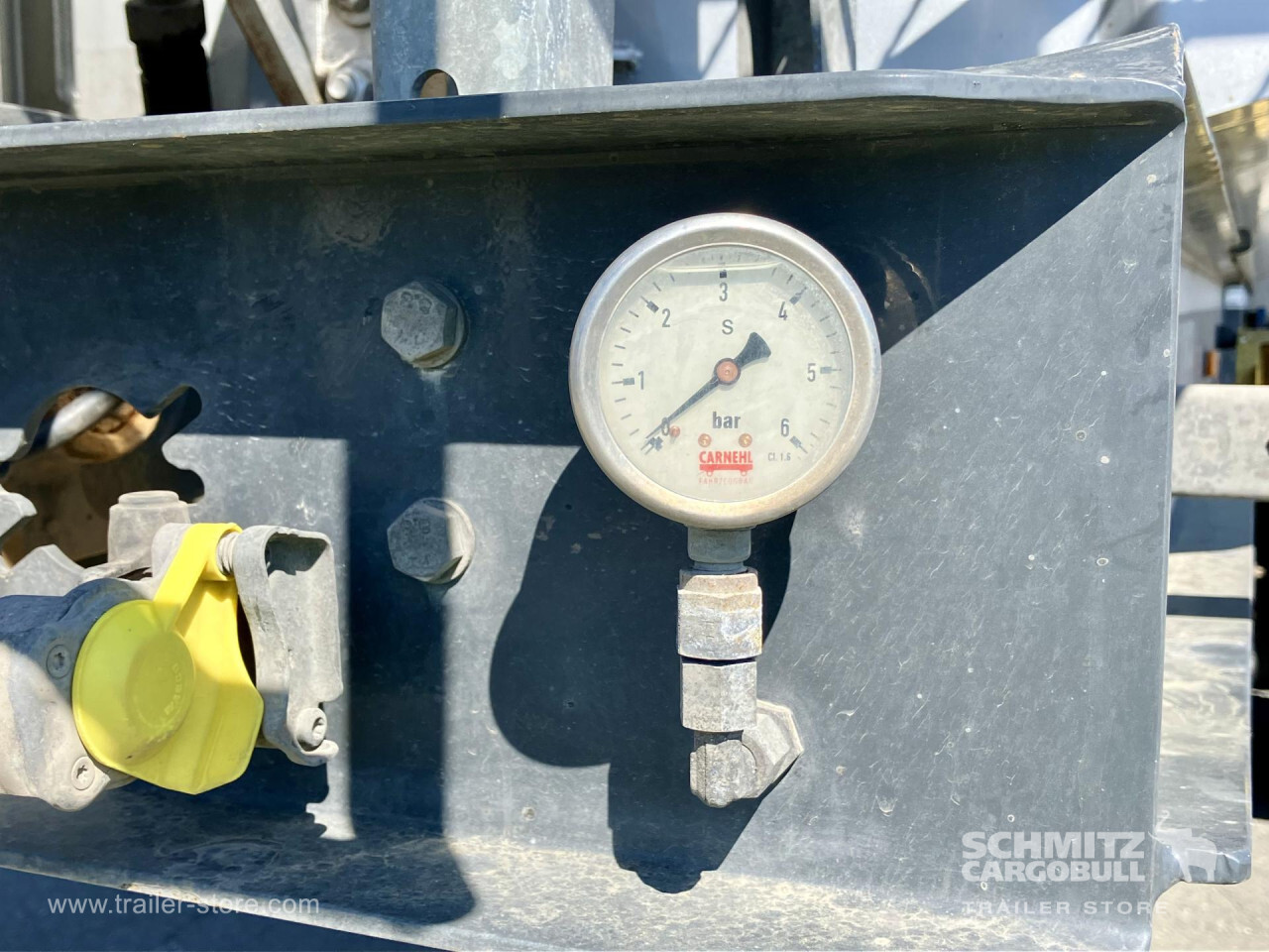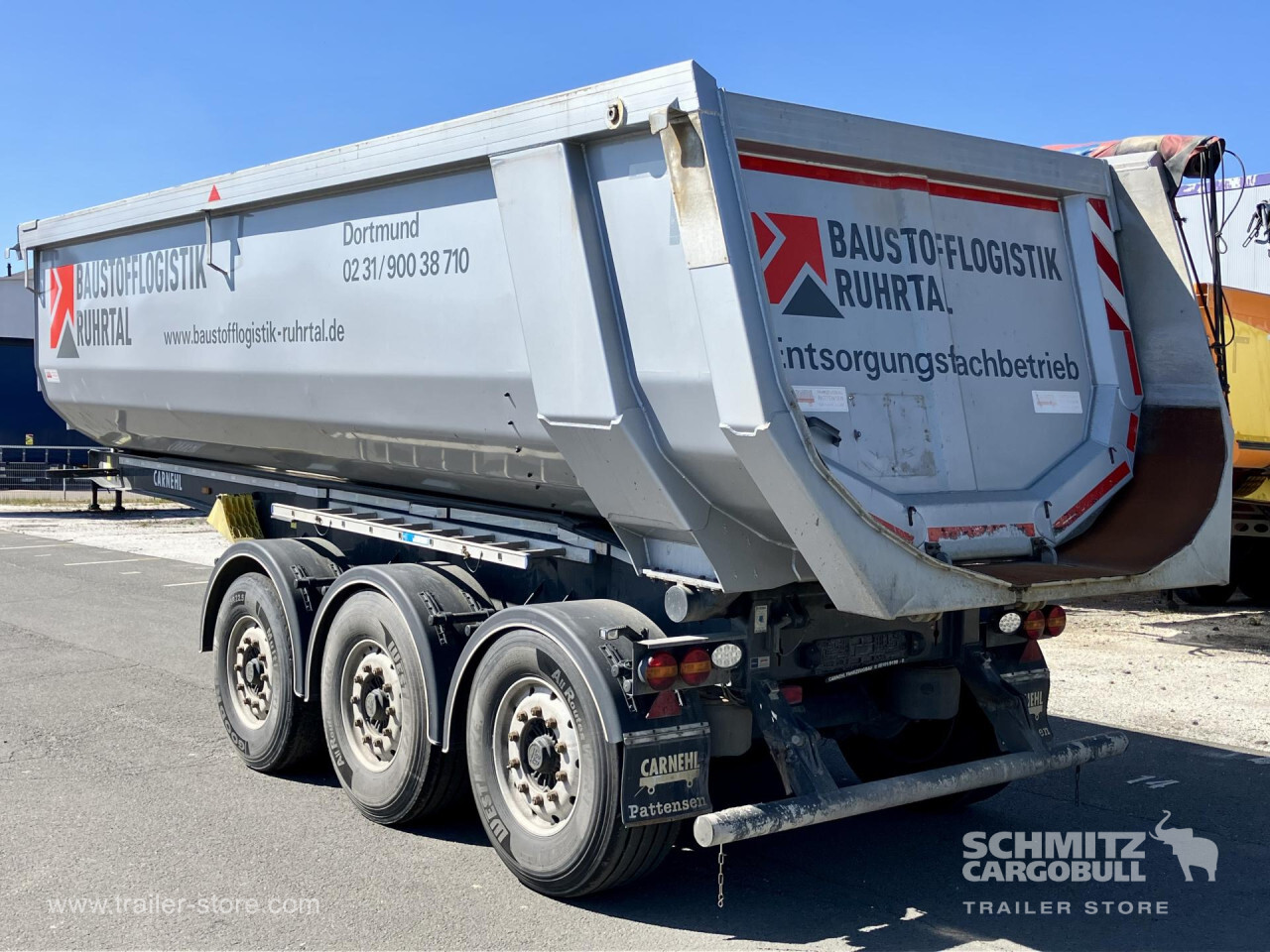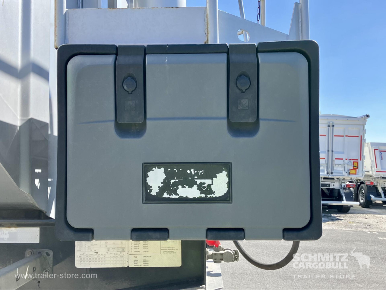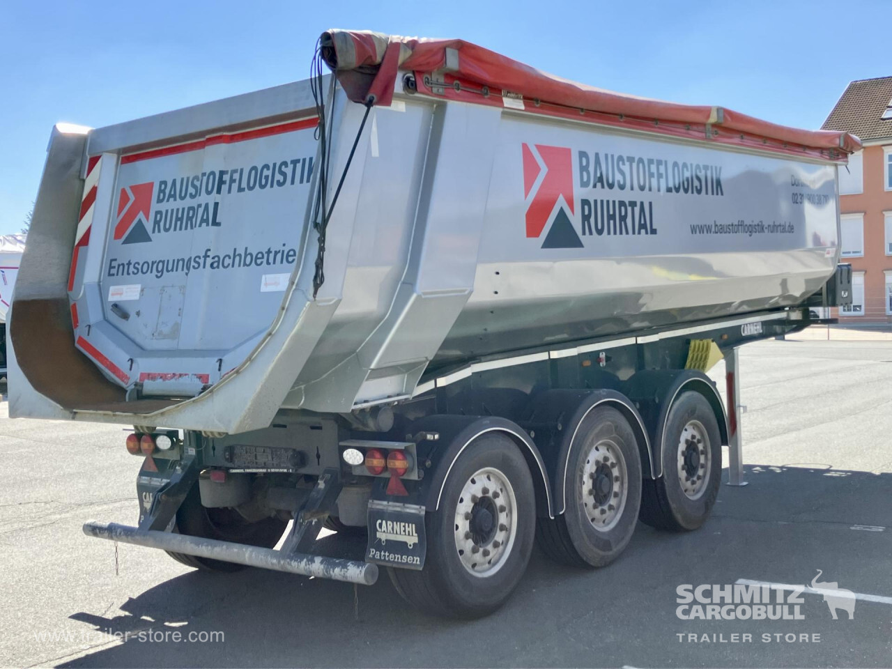 Remarks: **Safety**\\Hinged rear underrun, Antilock Braking System ABS\\\\**Exterior**\\Air suspension, Toolbox, Recessed pendulum tailgate, Roof rolling tarpaulin, Access platform, 1x15 pin plug, Light alloy rims\\\\**Brake system**\\Disc brake\\\\**Loading area**\\Length 7.100 mm, Width 2.340 mm, Height 1.500 mm, Volume 24 m³\\\\**Tyre sizes**\\1. Achse: 385/65 R22.5 , Tread depth: 10 mm / 3 mm, 2. Achse: 385/65 R22.5 , Tread depth: 13 mm / 14 mm, 3. Achse: 385/65 R22.5 , Tread depth: 5 mm / 12 mm\\\\**Other dimensions and weights**\\GVW: 35.500 kg\\\\----