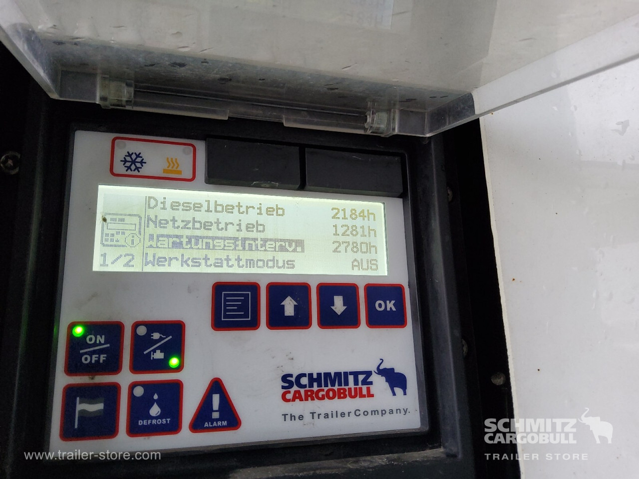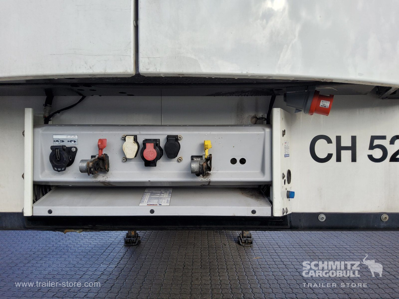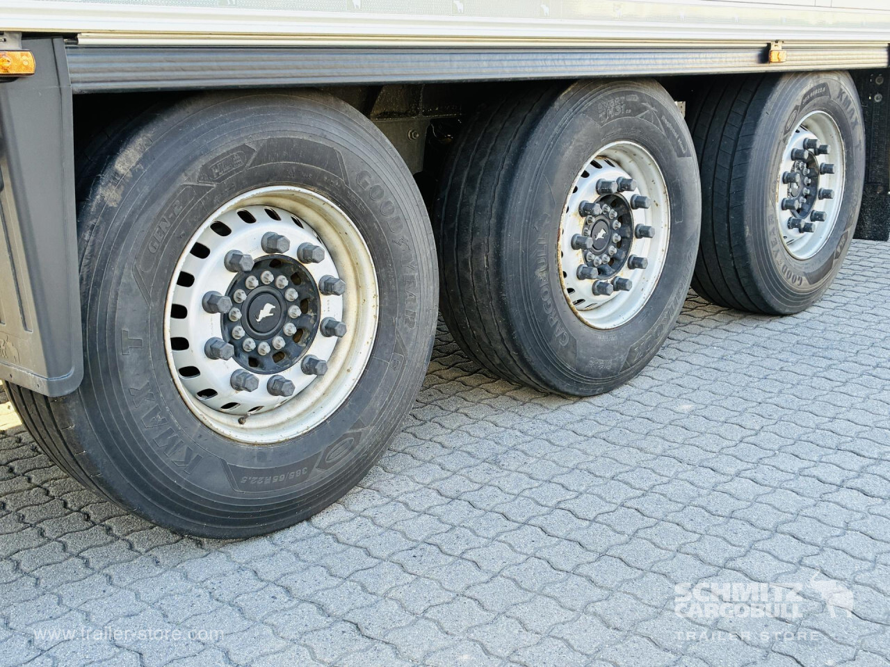 Remarks: **Safety**\\Rear underrun, Antilock Braking System ABS, Telematics system\\\\**Interior**\\Double deck with beams\\\\**Exterior**\\Air suspension, Spare wheel carrier double, Bolted chassis, Gantry doors, 1x15 and 2x7 pin plug, Antispray\\\\**Cargo securing**\\Cargo securing with certificate, DIN EN 12642 (code XL) certificate\\\\**Brake system**\\Disc brake, Schmitz ROTOS\\\\**Floor**\\Aluminum floor\\\\**Wand**\\Stirnwand verstärkt\\\\**Wall**\\Frontwall recess for cooling, Wall thickness45 mm\\\\**Cooling unit**\\Schmitz Cargobull S.CU V 1.0, Diesel/Elektro, 2.184 Operating hours Diesel, 1.281 Operating hours electric\\\\**Loading area**\\Length 13.403 mm, Width 2.490 mm, Height 2.650 mm, Volume 88 m³\\\\**Tyre sizes**\\1. Achse: 385/65 R22.5 , Tread depth: 15 mm / 15 mm, 2. Achse: 385/65 R22.5 , Tread depth: 11 mm / 11 mm, 3. Achse: 385/65 R22.5 , Tread depth: 15 mm / 15 mm\\\\**Other dimensions and weights**\\GVW: 36.000 kg\\\\----