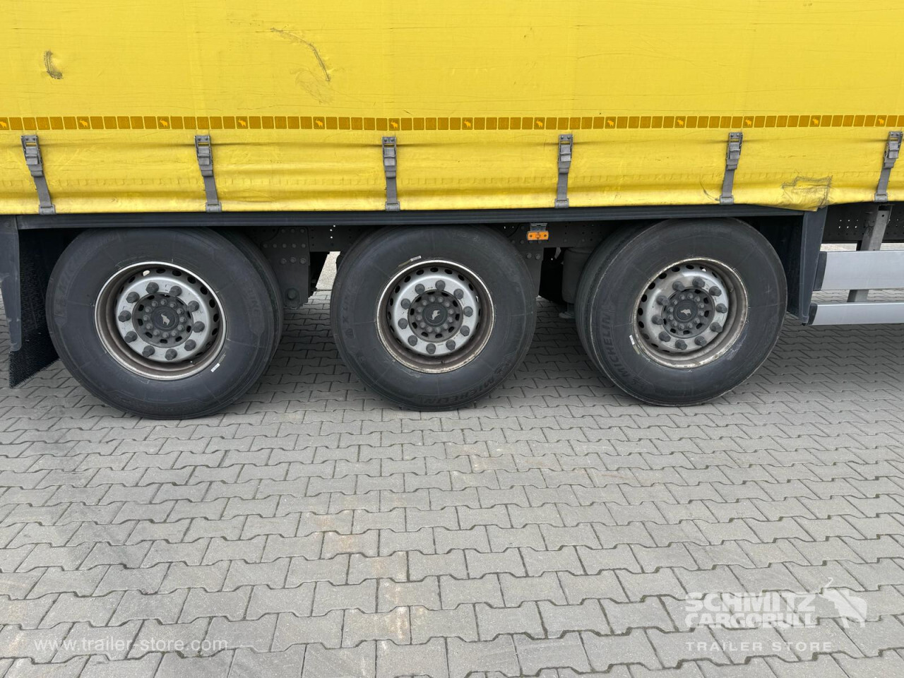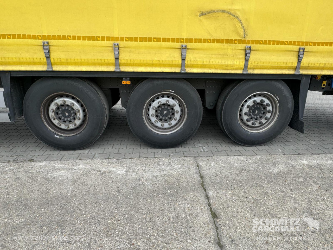 **Safety**\\Rear underrun, Antilock Braking System ABS\\\\**Exterior**\\Air suspension, 1x15 and 2x7 pin plug, Antispray\\\\**Cargo securing**\\DIN EN 12642 (code XL) certificate\\\\**Brake system**\\Disc brake, Schmitz Cargobull\\\\**Floor**\\Wisadeck floor\\\\**Loading area**\\Length 13.620 mm, Width 2.480 mm, Height 2.780 mm, Volume 93 m³\\\\**Tyre sizes**\\1. Achse: 385/65 R22.5 , Tread depth: 13 mm / 13 mm, 2. Achse: 385/65 R22.5 , Tread depth: 13 mm / 13 mm, 3. Achse: 385/65 R22.5 , Tread depth: 13 mm / 13 mm\\\\----