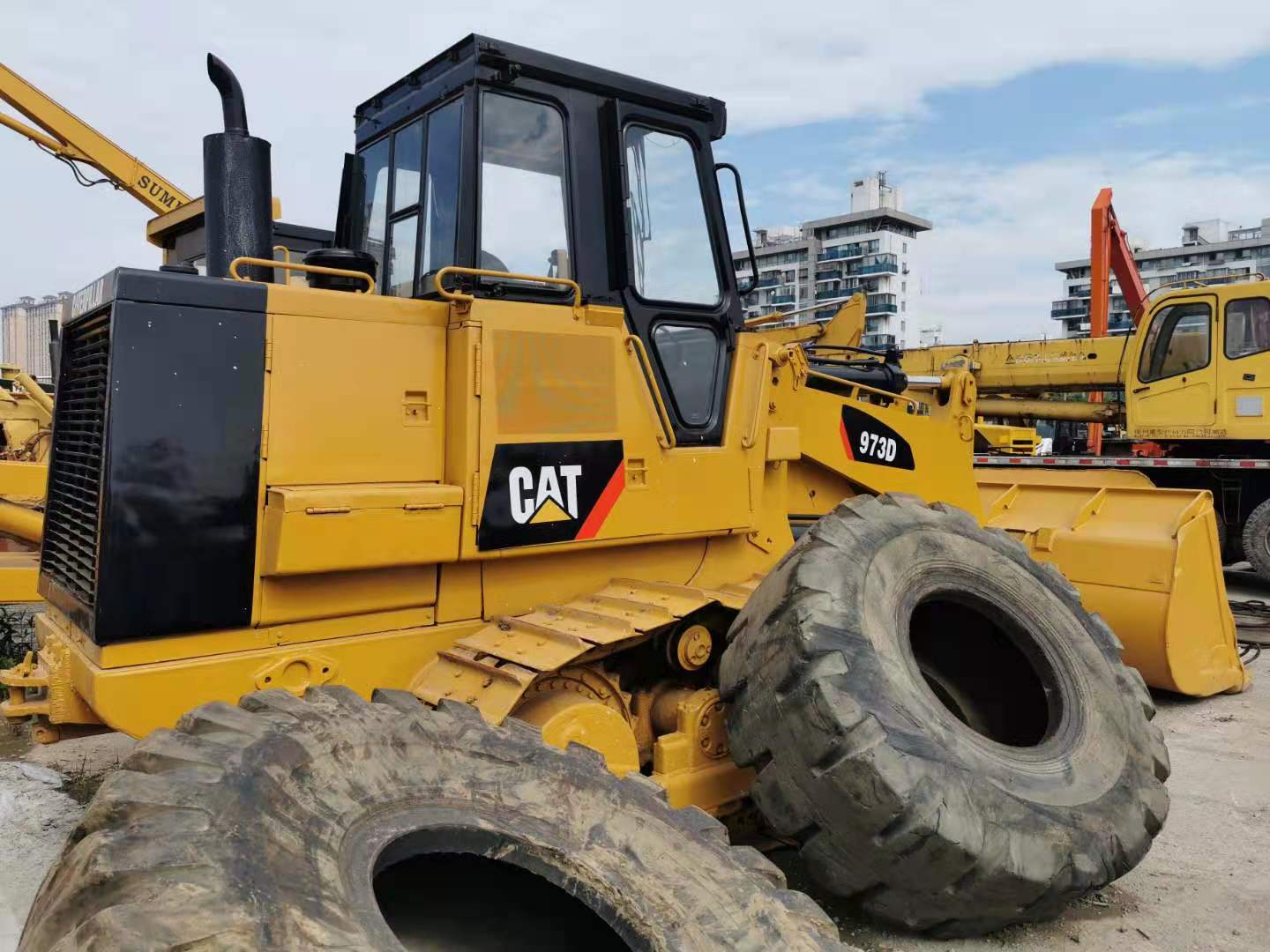 Model: Cat 973D Track Loader Operating Weight: 61,857 lb (28,058 kg), Bucket Capacity: 4.2 yd³ (3.21 m³) Dimensions: 295 in (7496 mm) long, 111.6 in (2835 mm) wide, 138.2 in (3510 mm) high Engine: Cat C9 ACERT™, 263 hp (196 kW), Max Speed: 6.8 mph (11 km/h) Release: Caterpillar's mid-2010s heavy-duty loader for construction, forestry & quarry tasks