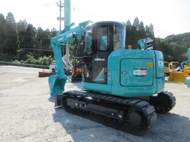 Brand & Model: Original Kobelco SK80UO-6T crawler excavator, specifically designed for ultra-confined urban job sites with its unique offset boom technology.