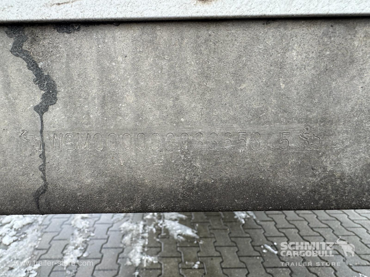 **Safety**\\Rear underrun, Antilock Braking System ABS\\\\**Exterior**\\Air suspension, 1x15 and 2x7 pin plug, Antispray\\\\**Cargo securing**\\DIN EN 12642 (code XL) certificate\\\\**Brake system**\\Disc brake, Schmitz Cargobull\\\\**Floor**\\Wisadeck floor\\\\**Loading area**\\Length 13.620 mm, Width 2.480 mm, Height 2.780 mm, Volume 93 m³\\\\**Tyre sizes**\\1. Achse: 385/65 R22.5 , Tread depth: 11 mm / 11 mm, 2. Achse: 385/65 R22.5 , Tread depth: 11 mm / 11 mm, 3. Achse: 385/65 R22.5 , Tread depth: 11 mm / 11 mm\\\\**Other dimensions and weights**\\Wheel base: 7.700 mm\\\\----
