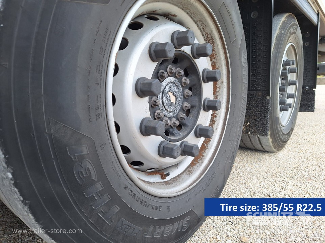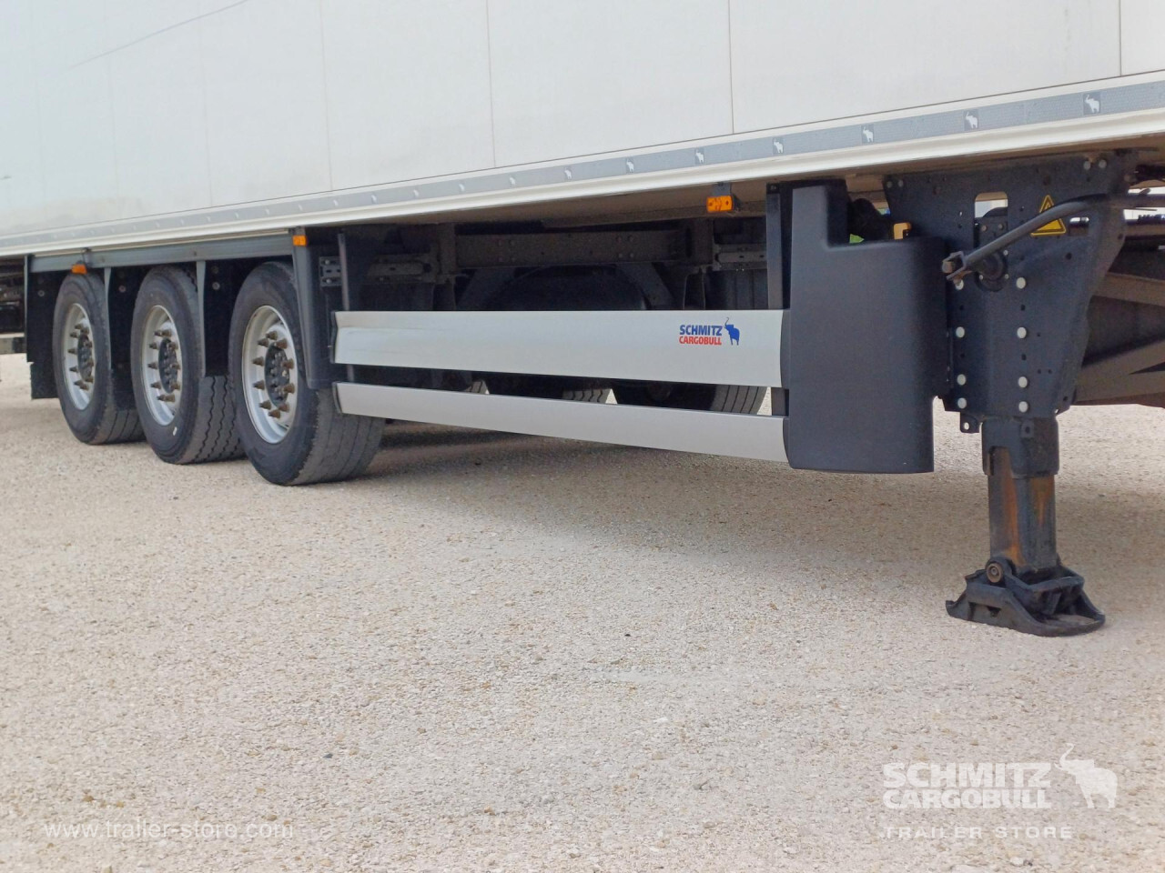 Remarks: **Safety**\\Rear underrun, Antilock Braking System ABS, Telematics system, Tyre pressure control\\\\**Interior**\\ISO partition wall without ventilators, Temperature recorder\\\\**Exterior**\\Air suspension, Lift axle front, Self-levelling suspension, Spare wheel carrier, 1x15 and 2x7 pin plug, Antispray, Customs seal, Dynamic ramp protection (DRP)\\\\**Cargo securing**\\DIN EN 12642 (code XL) certificate\\\\**Brake system**\\Disc brake, Schmitz ROTOS\\\\**Floor**\\Aluminum floor\\\\**Cooling unit**\\Schmitz Cargobull, Diesel/Elektro\\\\**Loading area**\\Length 13.403 mm, Width 2.460 mm, Height 2.700 mm, Volume 89 m³\\\\**Tyre sizes**\\ 385/55 R22.5 , 385/55 R22.5 , 385/55 R22.5\\\\**Other dimensions and weights**\\Wheel base: 7.600 mm\\\\----