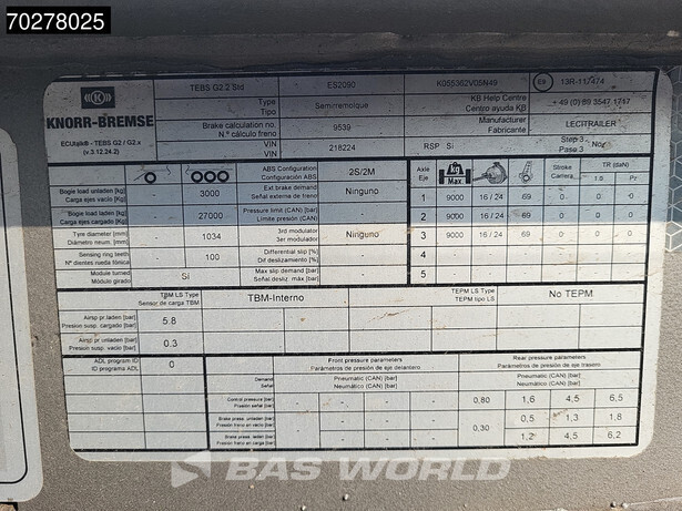 Obtenez un rapport d'inspection détaillé pour 2023 Lecitrailer SR3EC et achetez en toute tranquillité d'esprit.