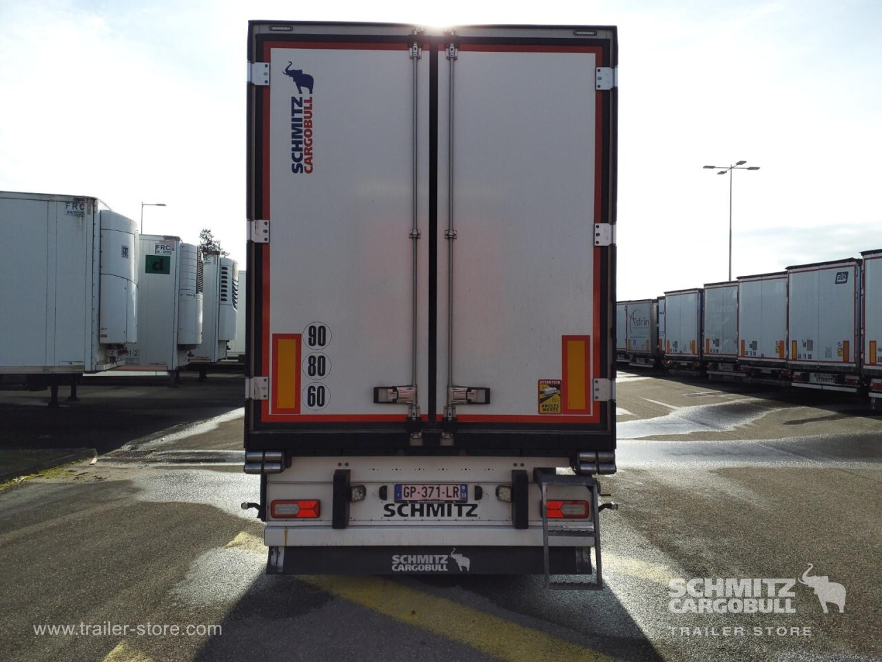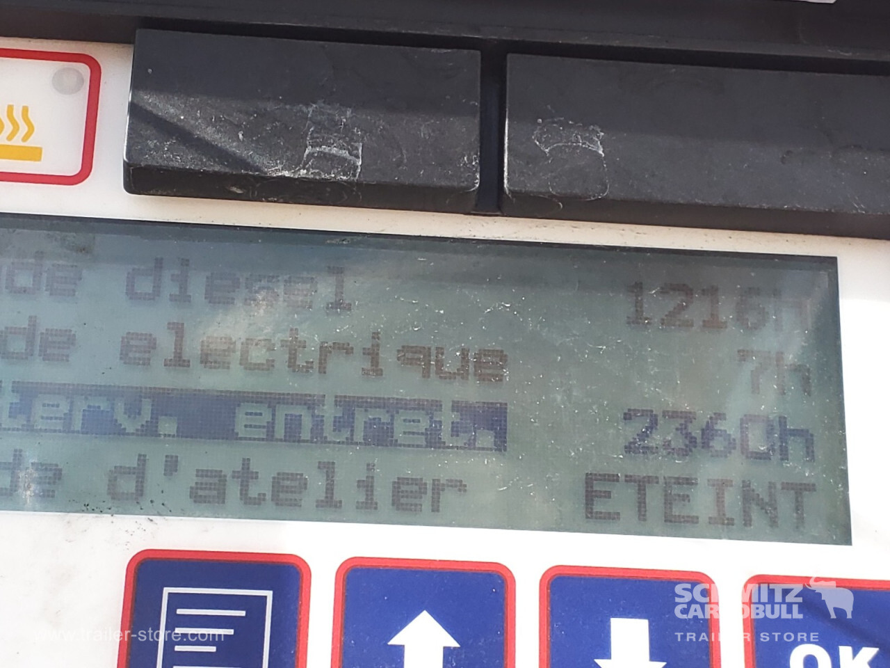 Remarks: **Safety**\\Rear underrun, Antilock Braking System ABS, Fire extinguisher holder, Telematics system\\\\**Interior**\\Temperature recorder\\\\**Exterior**\\Air suspension, Lift axle front and rear, Pallet box, Toolbox, Spare wheel carrier double, Bolted chassis, Gantry doors, 1x15 and 2x7 pin plug, Antispray, International customs seals\\\\**Cargo securing**\\Cargo securing with certificate, DIN EN 12642 (code XL) certificate, Load securing rail\\\\**Brake system**\\Disc brake, Schmitz ROTOS\\\\**Floor**\\Aluminum floor\\\\**Wand**\\Stirnwand verstärkt\\\\**Wall**\\Frontwall recess for cooling\\\\**Cooling unit**\\Schmitz Cargobull S.CU V 2.0, Diesel/Elektro, 1.216 Operating hours Diesel, 7 Operating hours electric\\\\**Loading area**\\Length 13.403 mm, Width 2.460 mm, Height 2.700 mm, Volume 89 m³\\\\**Tyre sizes**\\1. Achse: 385/65 R22.5 , Tread depth: 10 mm / 10 mm, 2. Achse: 385/65 R22.5 , Tread depth: 4 mm / 6 mm, 3. Achse: 385/65 R22.5 , Tread depth: 8 mm / 8 mm\\\\**Other dimensions and weights**\\GVW: 38.000 kg\\\\----Disques de frein Essieu 1 44 mm Plaquettes de frein Essieu 1 20% dusure Disques de frein Essieu 2 44 mm Plaquettes de frein Essieu 2 20% dusure Disques de frein Essieu 3 44 mm Plaquettes de frein Essieu 3 20% dusuremines 06/2026 -