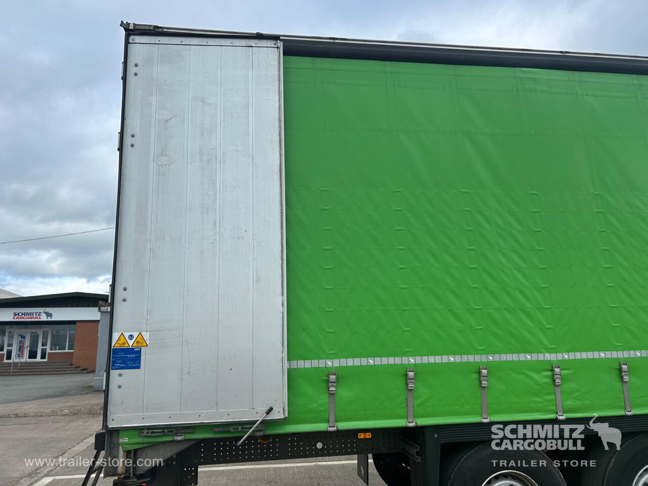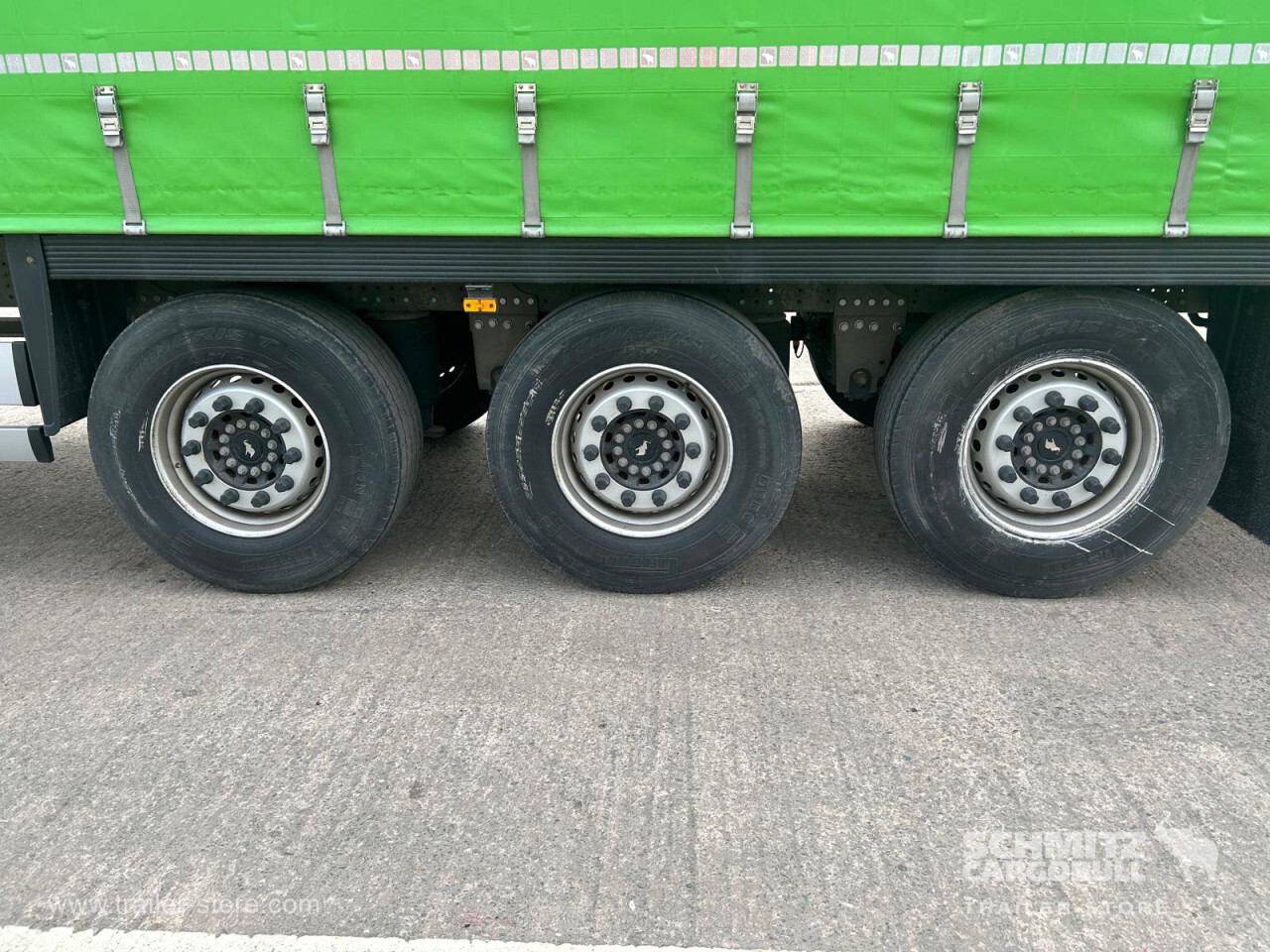 Remarks: **Safety**\\Rear underrun, Antilock Braking System ABS, Telematics system: Including tyre pressure monitoring system, with subscription.\\\\**Exterior**\\Air suspension, Ferry lashings, 1x15 and 2x7 pin plug, Antispray\\\\**Further equipment**\\Lashing eyes, 16 pairs, 4t tensile force per eye.Side aperture height 3000mm.13 pair load restraint straps in roof tracks.2 x roof mounted load restraint tracks, positioned 180mm inboard of cant rail.\\\\**Cargo securing**\\DIN EN 12642 (code XL) certificate, Punched load securing side rave\\\\**Brake system**\\Disc brake, Schmitz ROTOS\\\\**Floor**\\Wisadeck floor, Lashing rings in floor\\\\**Roof**\\Aluminum roof\\\\**Loading area**\\Length 13.530 mm, Width 2.480 mm, Height 3.065 mm, Volume 102 m³\\\\**Tyre sizes**\\ 385/65 R22.5 , 385/65 R22.5 , 385/65 R22.5\\\\**Other dimensions and weights**\\Payload: 32.439 kg, GVW: 39.000 kg, Wheel base: 7.700 mm\\\\----