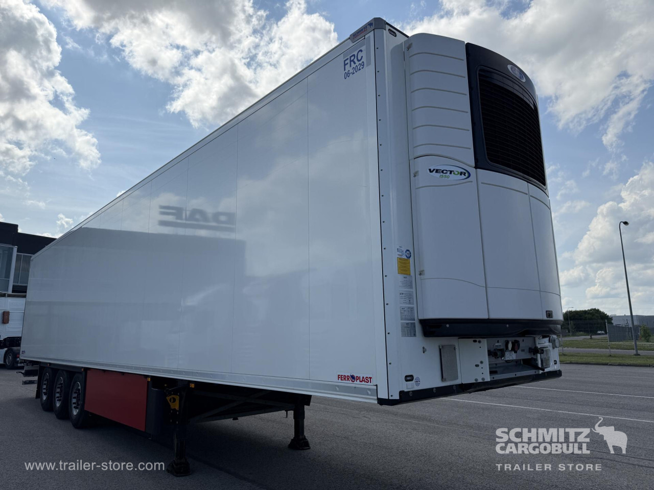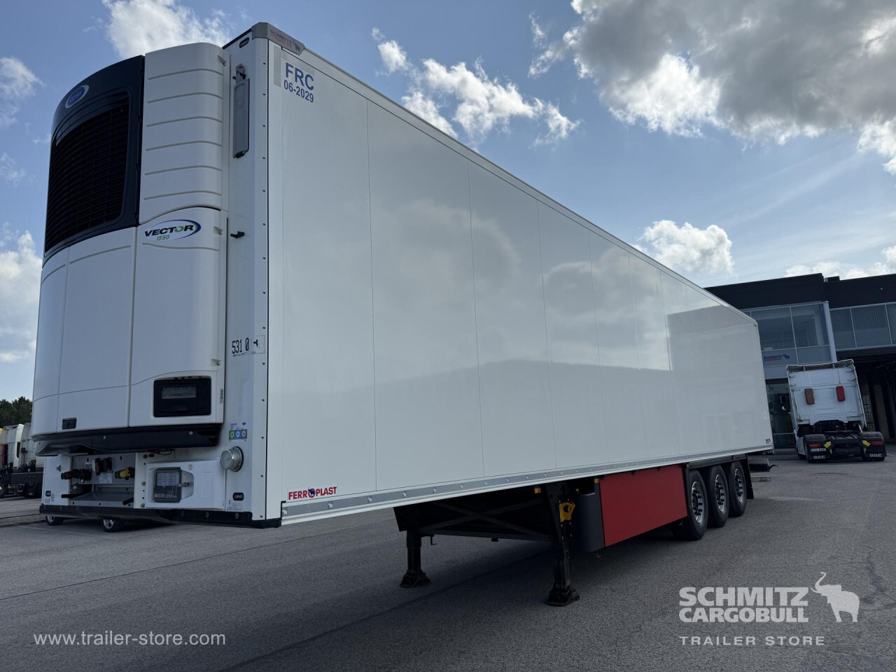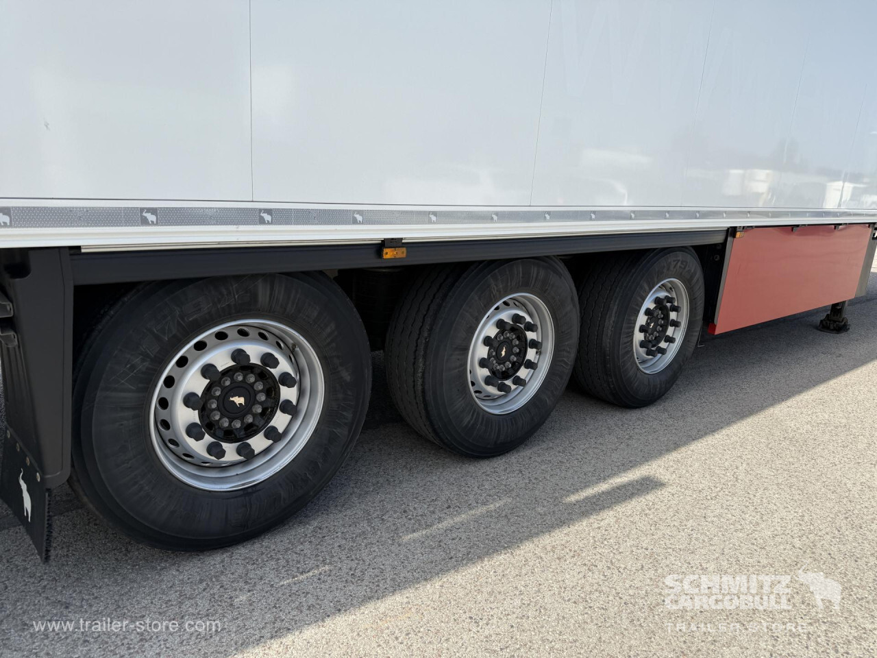 Remarks: **Safety**\\Rear underrun, Antilock Braking System ABS\\\\**Exterior**\\Air suspension, Lift axle front, Spare wheel carrier double, Ferry lashings, 1x15 and 2x7 pin plug, Antispray\\\\**Brake system**\\Disc brake, Schmitz ROTOS\\\\**Cooling unit**\\Carrier Vector 1550, 1.148 Operating hours Diesel\\\\**Loading area**\\Length 13.403 mm, Width 2.490 mm, Height 2.650 mm, Volume 88 m³\\\\**Tyre sizes**\\ 385/65 R22.5 , 385/65 R22.5 , 385/65 R22.5\\\\**Other dimensions and weights**\\Payload: 30.882 kg, GVW: 39.000 kg, Wheel base: 7.600 mm\\\\----