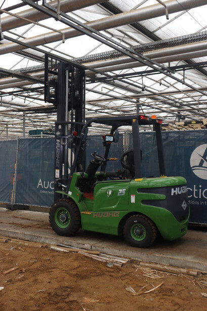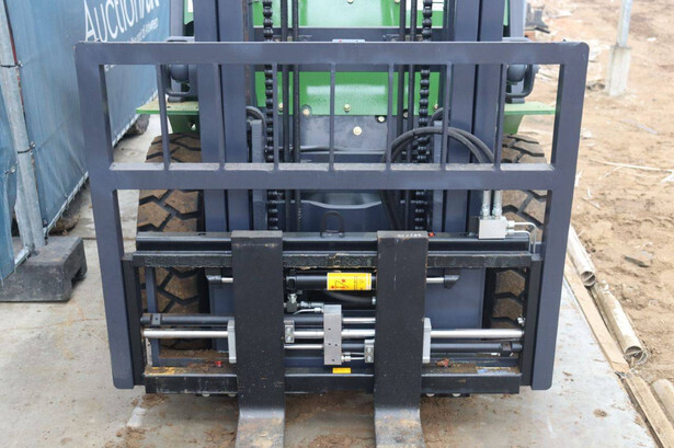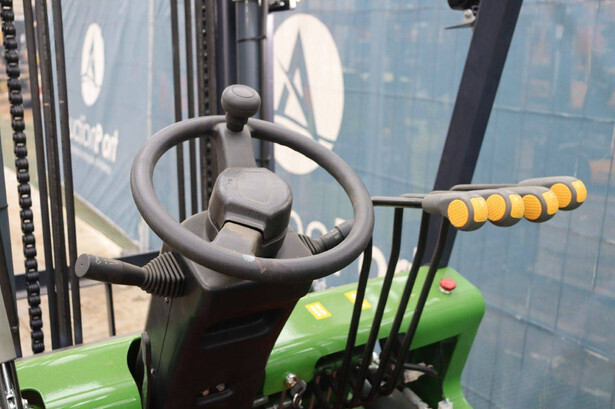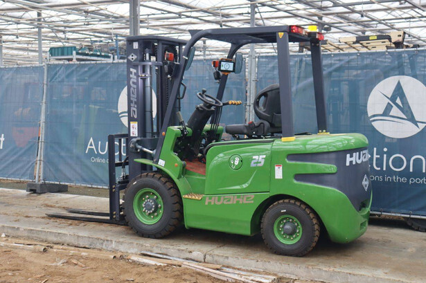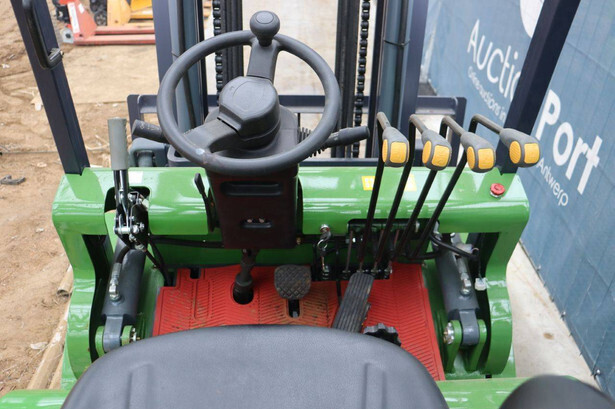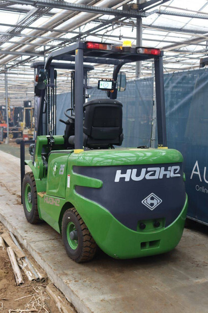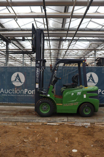 Brand: Huahe Type: HHF25 Serial number: 20250562 Year of construction: 2025 Fuel: Electric Mast type: Duplex Sideshift: Yes Lifting capacity: 2500 kg Lifting height: 3000 mm Reading operating hours: 15 h Machine weight: 4000 kg Tires: Pneumatic tires Color: green