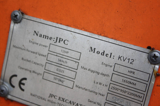 Brand: JPC Type: KV12 Year of construction: 2025 Fuel: Diesel Quick change: No Operating hours read: Not known Running gear: Tracks Machine weight: 1070 kg Color: orange