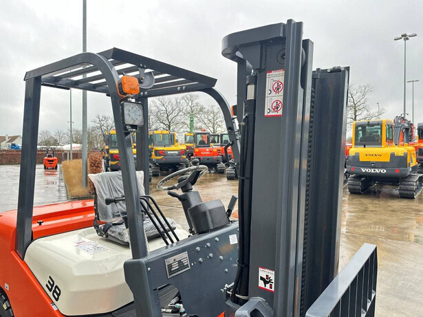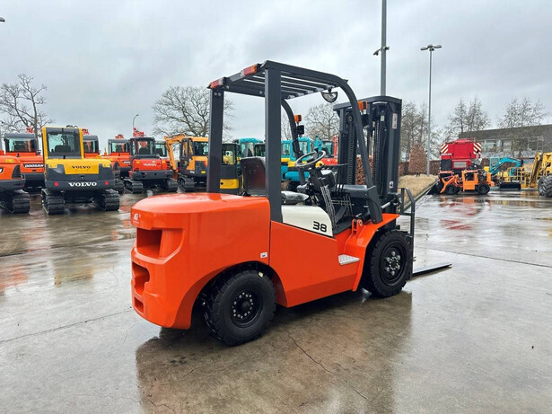Brand: Machpro Type: MP-L38 Serial number: MP2501060021 Year of construction: 2025 Fuel: Diesel Mast type: Duplex Power: 42 kW Sideshift: Yes Lifting height: 3100 mm Length of spoons: 1200 mm Reading operating hours: 0 h Machine weight: 3800 kg Tires: Solid tires Color: orange Transport dimensions: 2900x1250x2160 mm