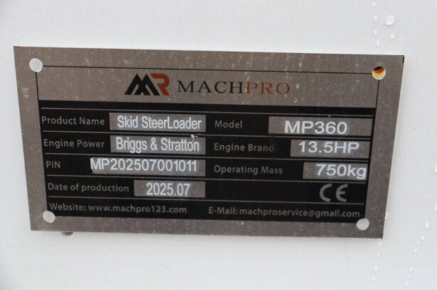 Brand: Machpro Type: MP360 Year of construction: 2025 Serial number: MP202507001011 Fuel: Gasoline Engine power: 13.5 HP Reading operating hours: 1 h Machine weight: 750 kg Running gear: Tracks Color: white