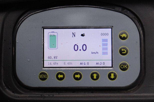 Options: Rearview mirror Electronic display Including 220 V charger Pallet forks Driving lights Work lighting Flashing light