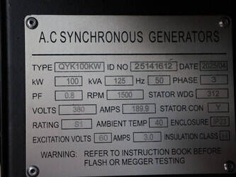 Brand: Ricardo Type: GF2-W100 Year of construction: 2025 Fuel: Diesel Engine Brand: Ricardo Power: 125 kVA Voltage: 380 V Current: 151 A Machine weight: 1860 kg Color: gray