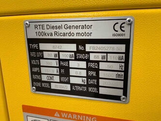 Brand: RTE Type: 6742 Serial number: FB2405278-58 Year of construction: 2025 Fuel: Diesel Engine Brand: Ricardo Power: 100 kVA Voltage: 380 V Current: 151 A Reading operating hours: 23 h Machine weight: 610 kg Color: yellow Dimensions: 2800x1090x1430 mm