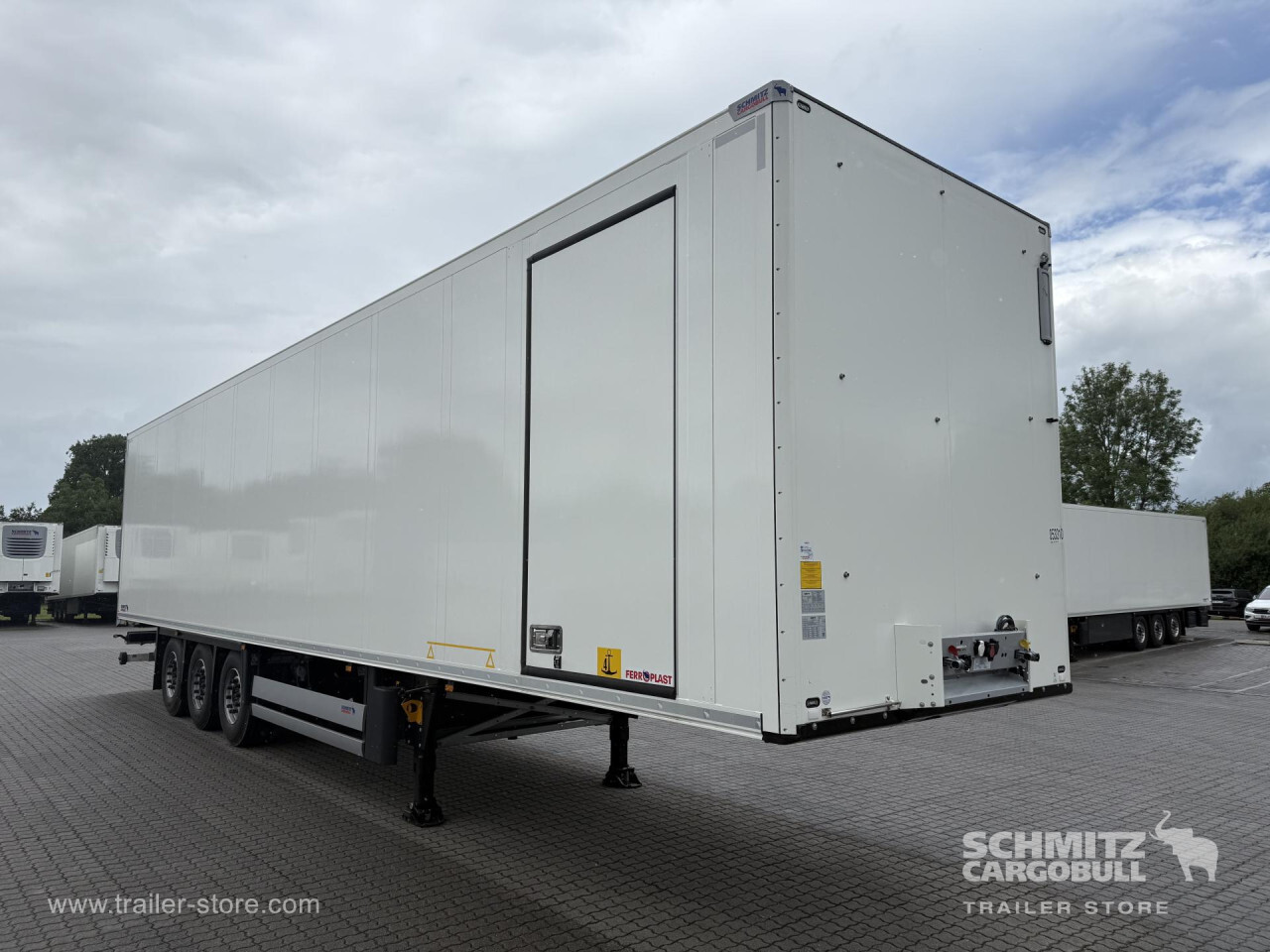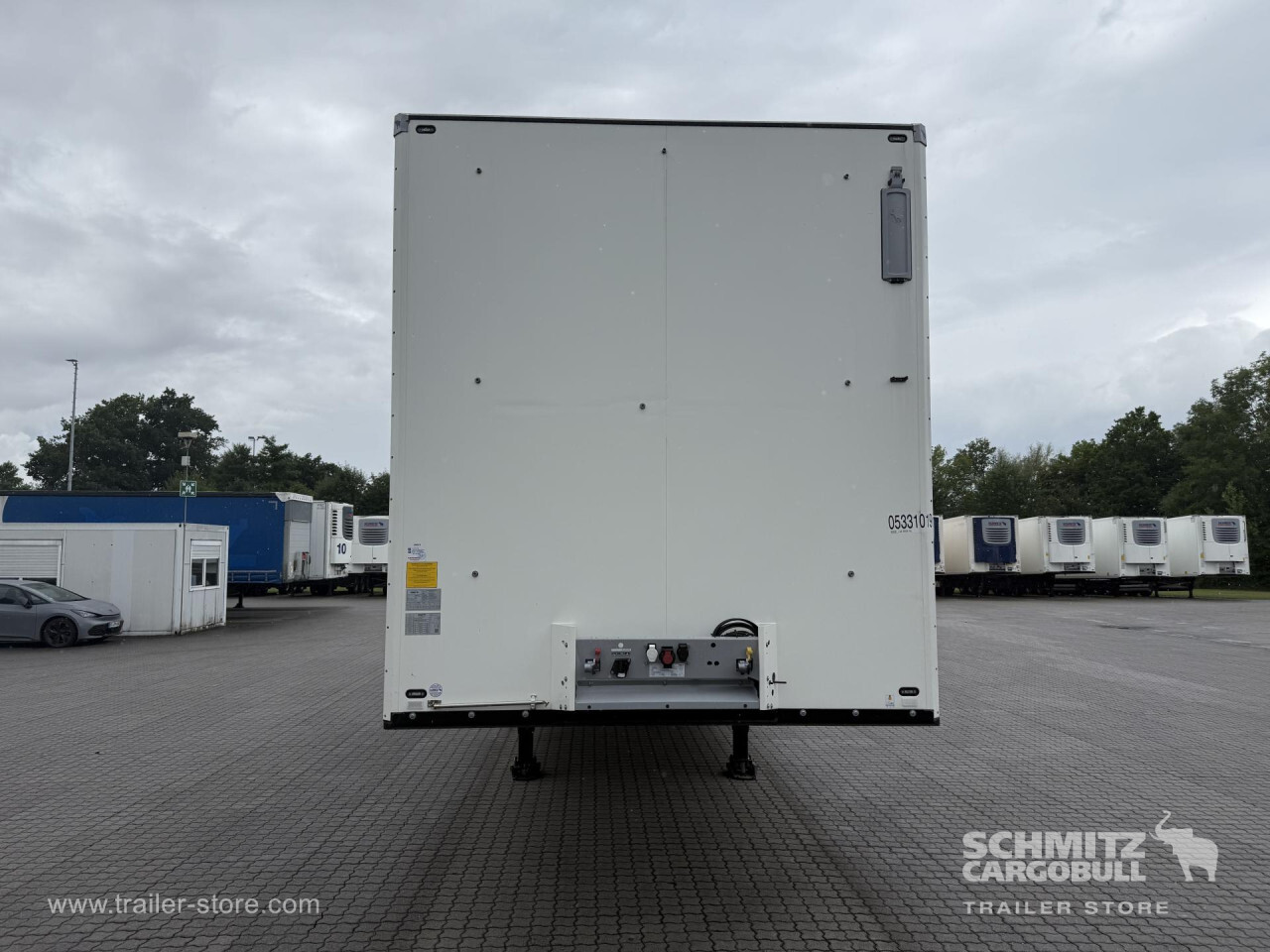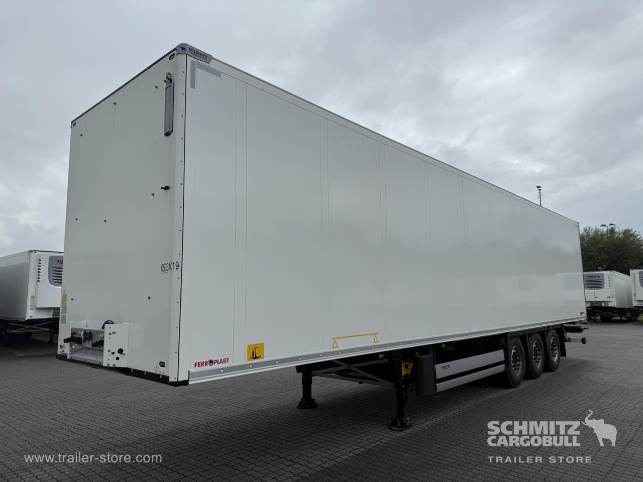 Remarks: **Safety**\\Rear underrun, Antilock Braking System ABS, Telematics system\\\\**Interior**\\ISO partition wall without ventilators, Double deck with beams, Multifunctional floor\\\\**Exterior**\\Air suspension, Lift axle front and rear, Ferry lashings, Bolted chassis, Gantry doors, 1x15 and 2x7 pin plug, Antispray, Impact buffer\\\\**Doors**\\Side door right\\\\**Cargo securing**\\Load securing rail\\\\**Brake system**\\Disc brake, Schmitz ROTOS\\\\**Floor**\\Aluminum floor, Lashing rings in floor\\\\**Wand**\\Stirnwand verstärkt\\\\**Wall**\\Frontwall recess for cooling, Wall thickness60 mm\\\\**Loading area**\\Length 13.403 mm, Width 2.460 mm, Height 2.700 mm, Volume 89 m³\\\\**Tyre sizes**\\1. Achse: 385/65 22.5 , Tread depth: 15 mm / 15 mm, 2. Achse: 385/65 22.5 , Tread depth: 15 mm / 15 mm, 3. Achse: 385/65 22.5 , Tread depth: 15 mm / 15 mm\\\\**Other dimensions and weights**\\Payload: 29.830 kg, GVW: 39.000 kg\\\\----
