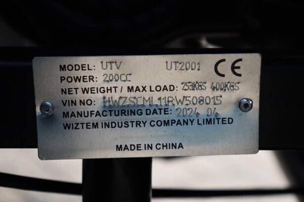 Brand: Wextrem Type: UTV-ATV 200 Pro Year of construction: 2025 Serial number: HWZSCML11PW508015 Fuel: Gasoline Engine power: 13 HP Tires: Pneumatic tires Color: black