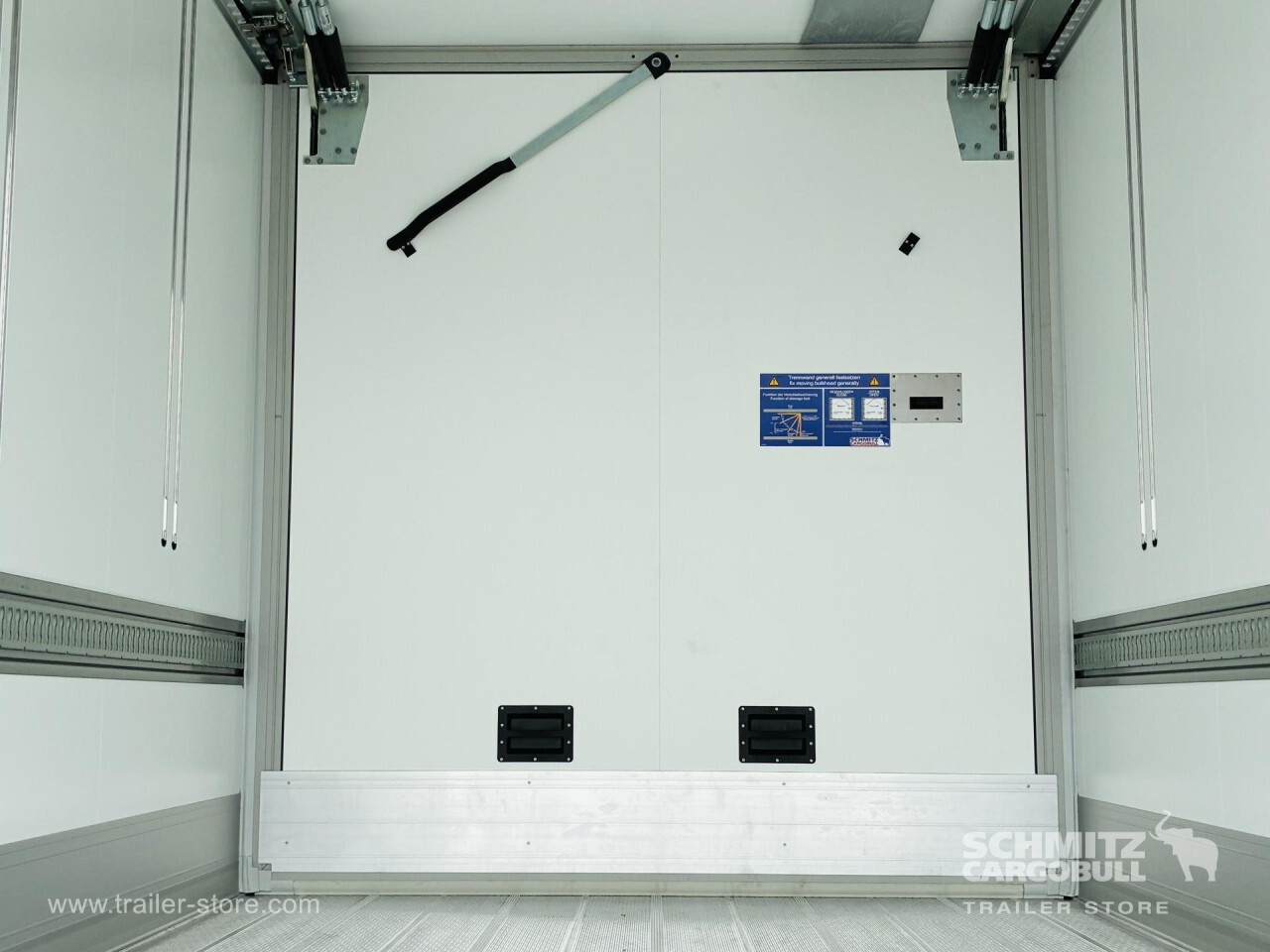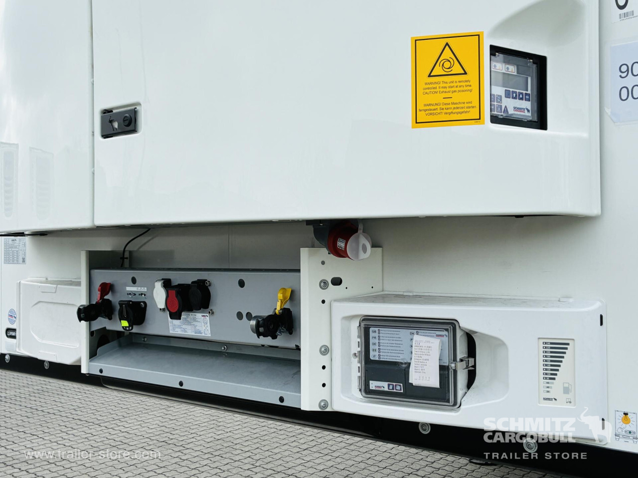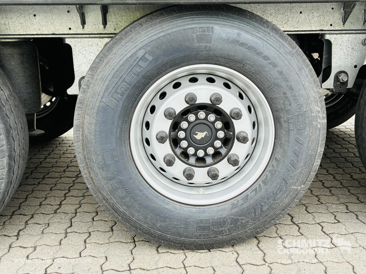 Remarks: **Safety**\\Rear underrun, Antilock Braking System ABS, Telematics system, Tyre pressure control\\\\**Interior**\\ISO partition wall without ventilators, Temperature recorder, Multifunctional floor\\\\**Exterior**\\Air suspension, Lift axle front, Pallet box, Spare wheel carrier double, Bolted chassis, Gantry doors, 1x15 and 2x7 pin plug, Antispray, International customs seals, Dynamic ramp protection (DRP)\\\\**Cargo securing**\\Load securing rail\\\\**Brake system**\\Disc brake, Schmitz Cargobull\\\\**Floor**\\Aluminum floor\\\\**Wand**\\Stirnwand verstärkt\\\\**Wall**\\Frontwall recess for cooling, Wall thickness45 mm\\\\**Cooling unit**\\Schmitz Cargobull S.CU dc85 mt, Diesel/Elektro\\\\**Loading area**\\Length 13.403 mm, Width 2.490 mm, Height 2.650 mm, Volume 88 m³\\\\**Tyre sizes**\\1. Achse: 385/65 R22.5 , Tread depth: 15 mm / 15 mm, 2. Achse: 385/65 R22.5 , Tread depth: 15 mm / 15 mm, 3. Achse: 385/65 R22.5 , Tread depth: 15 mm / 15 mm\\\\**Other dimensions and weights**\\Payload: 29.961 kg, GVW: 39.000 kg\\\\----