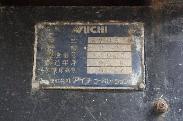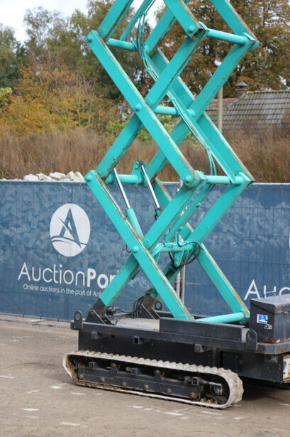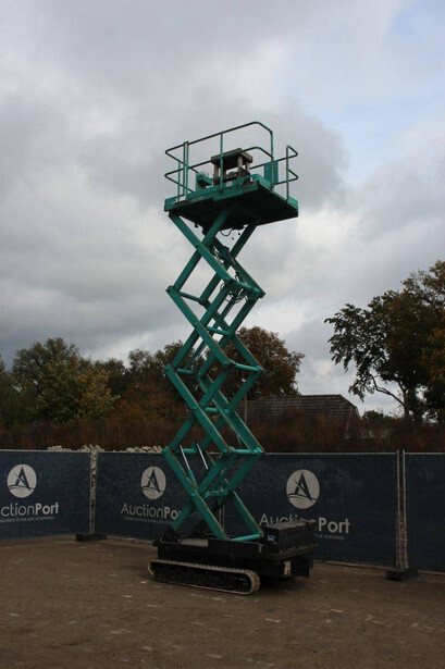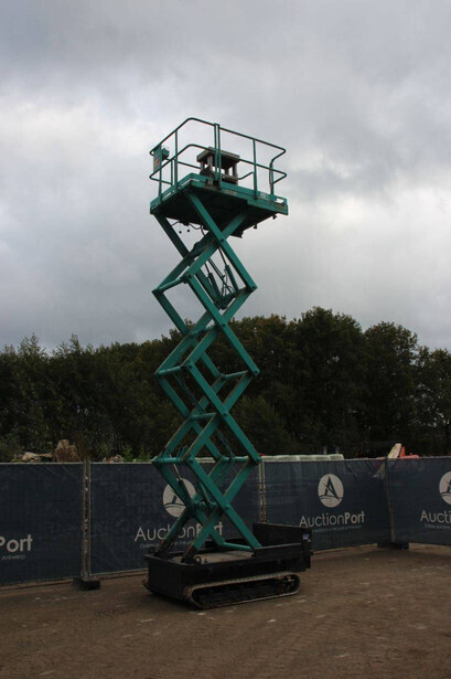 Brand: Aichi Type: RV060 Serial number: 339271 Fuel: Electric Lifting capacity: 250 kg Working height: 8 m Running gear: Tracks Type: Scissor lift Color: green