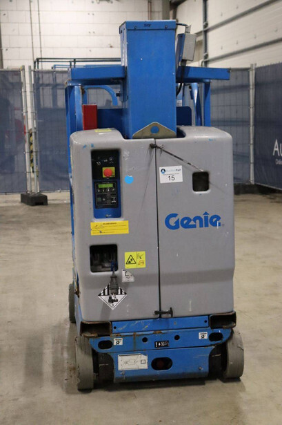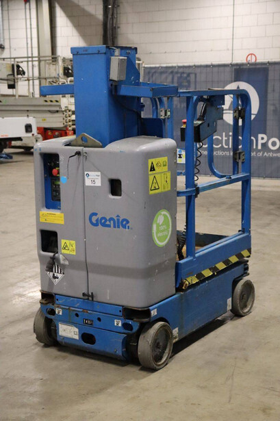 Brand: Genie Type: GRC-12 Year of construction: Not known Fuel: Electric Lifting capacity: 381 kg Working height: 5.66 m Operating hours read: 268 h Chassis: Wheels Type: Mast lift Tires: Non-marking tires Color: blue