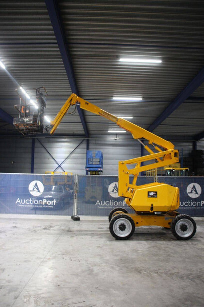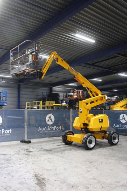 Brand: JLG Type: 430AG Serial number: 0300159309 Year of construction: Not known Fuel: Diesel Lifting capacity: 230 kg Working height: 12.33 m Operating hours read: 3290 h Machine weight: 4335 kg Chassis: Wheels Type: Articulated boom lift Tires: Pneumatic tires Color: yellow